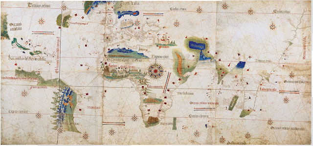 | Fig. 4 Cantino Planisphere (world map) smuggled from Portugal to Italy in 1502 Sources: Wikipedia or the fully zoomable image here at the Quebec Archives